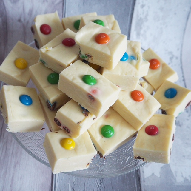 M&M White Chocolate Fudge In 5 Easy Steps.
